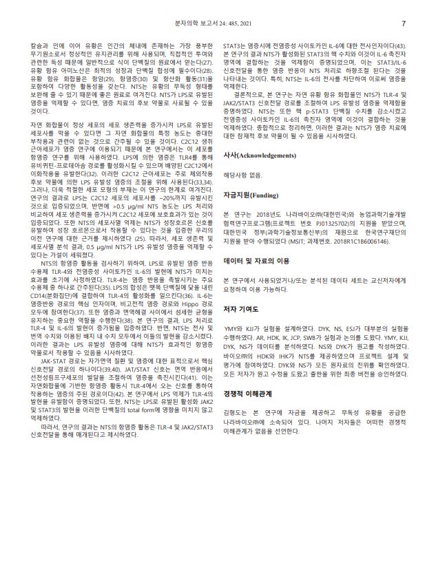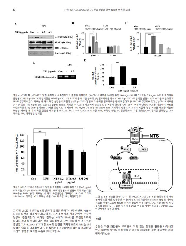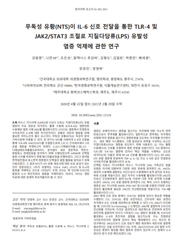 ¹«µ¶¼º À¯È²(NTS)ÀÌ IL-6 ½ÅÈ£ Àü´ÞÀ» ÅëÇÑ TLR-4 ¹× JAK2/STAT3 Á¶Àý·Î ÁöÁú´Ù´ç·ù(LPS) À¯¹ß¼º ¿°Áõ ¾ïÁ¦¿¡ °üÇÑ ¿¬±¸